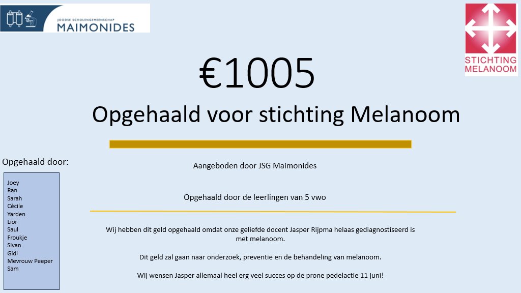heel mooi bedrag opgehaald voor stichting Melanoom, waar Jasper Rijpma zich voor